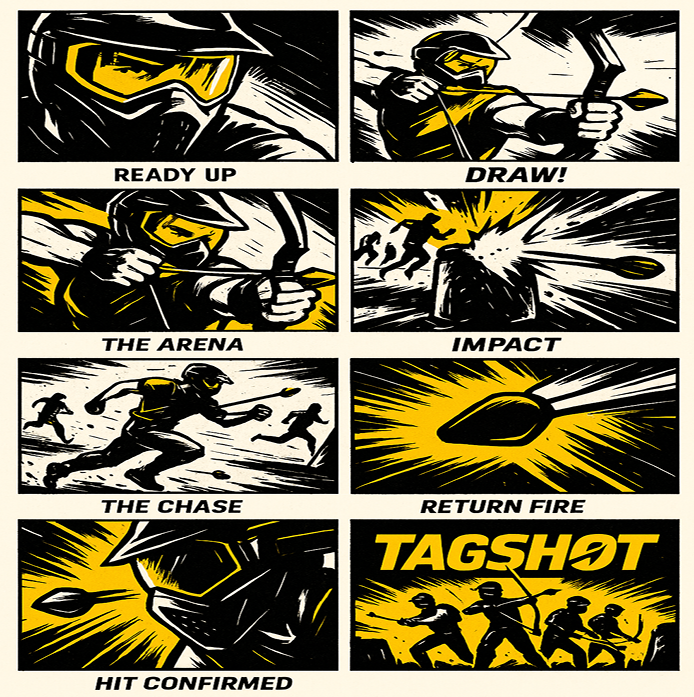 TAGSHOT is a live-action archery battle game where players sprint, dodge, defend, and fire soft impact arrows in competitive team-based matches. It combines strategy, teamwork, speed, and adrenaline into one epic experience.